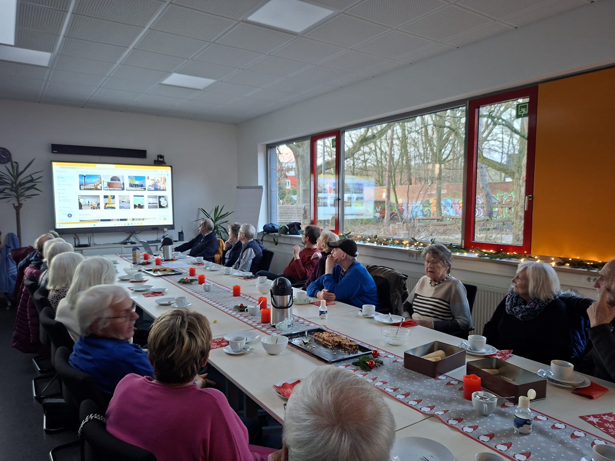 Bei leckerem Kaffee und einer vielfältigen Auswahl an Kuchen genossen die Gäste einen entspannten Nachmittag. Im Mittelpunkt standen die Bilder der Vereinsfahrten und der zahlreichen Veranstaltungen des Jahres 2025. Diese wurden auf einem Großbild schirm präsentiert und sorgten für viele schöne Erinnerungen, angeregte Gespräche und so manches Schmunzeln.